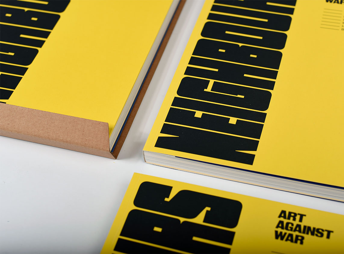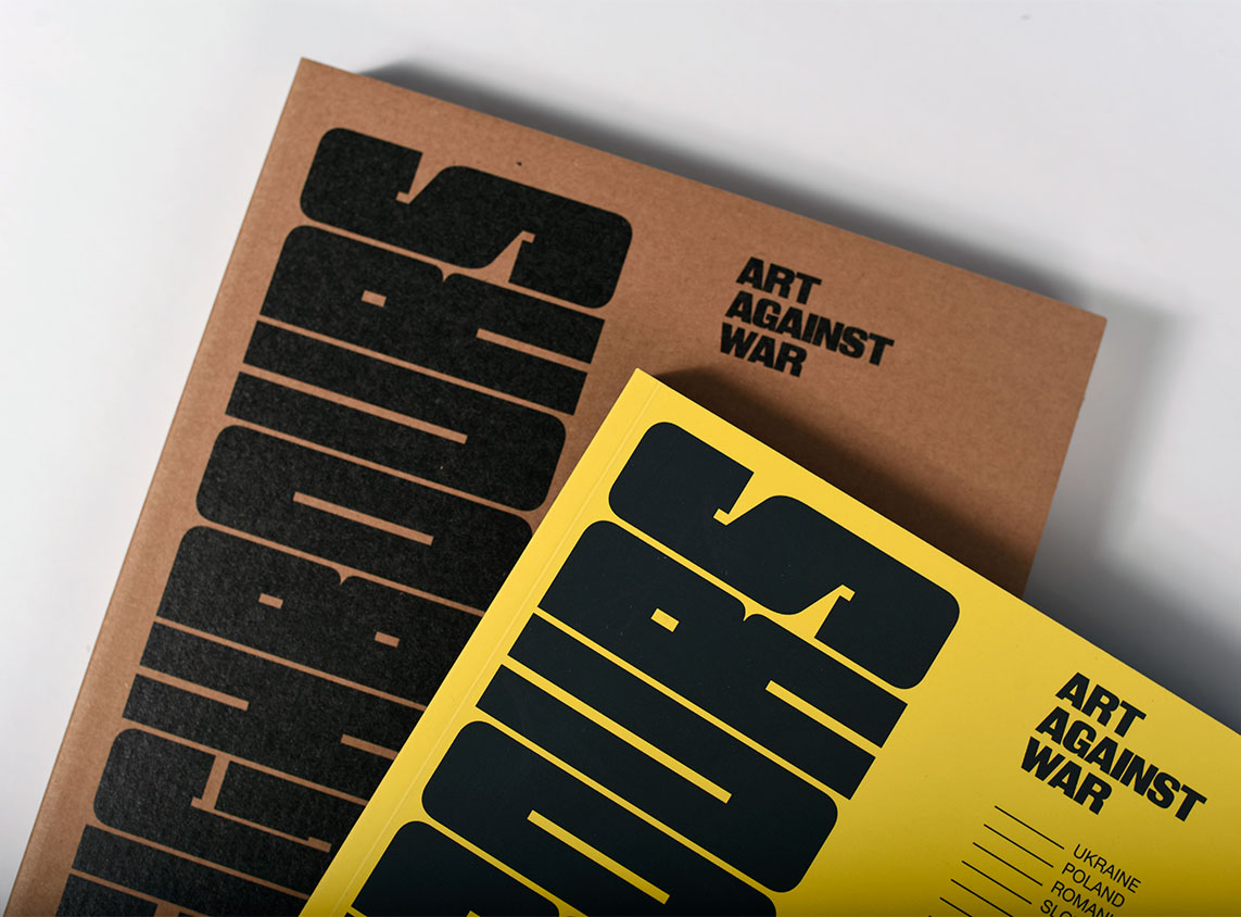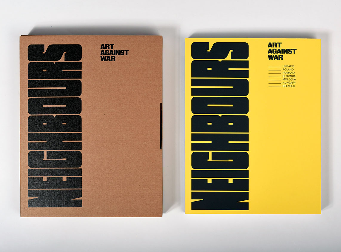 Wersja albumu NEIGHBOURS Art Against War w oprawie miękkiej szyto-klejonej, zawiera wyjątkowe prace 114 artystów i artystek z Ukrainy, Polski, Węgier, Słowacji, Mołdawii, Rumunii i Białorusi, zaprezentowanych na 140 stronach. Wnętrze albumu wykonane na wysokogatunkowym papierze Munken Pure Rough 170 g, zadruk w pięciu kolorach. Okładka wykonana na kartonie 300 g z otwieranymi skrzydełkami i zadrukowana dwoma kolorami Pantone w barwach Ukrainy. Dodatkowo oryginalne opakowanie z tektury.